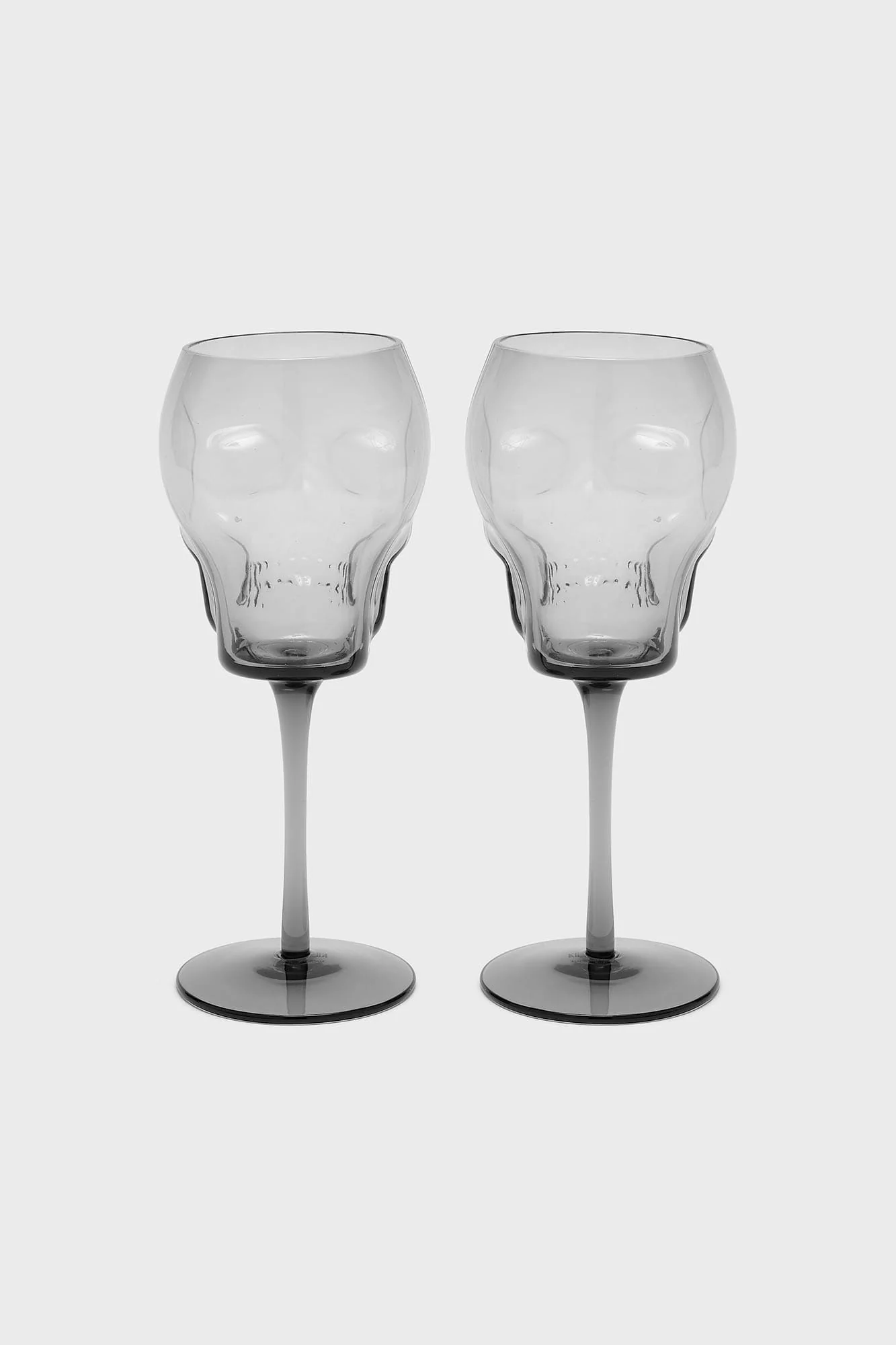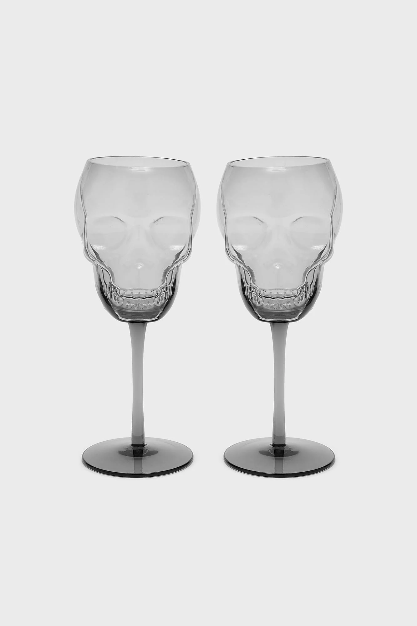 – Statement sculpted skull wine glasses.