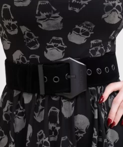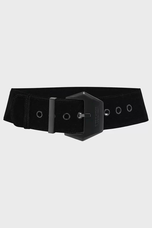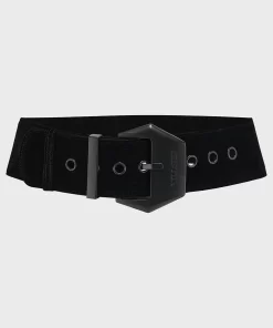 – Statement structure velvet wide belt.