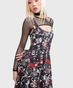 With KILLSTAR branding, Main Body: 95% Viscose 5% Elastane, Lace: 90% Polyamide 10% Elastane.