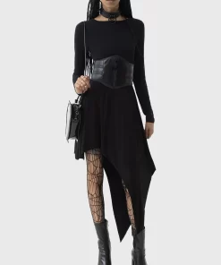 – Exaggerated asymmetric hem.