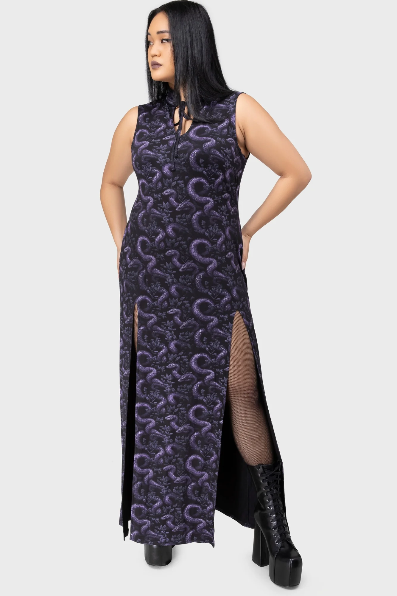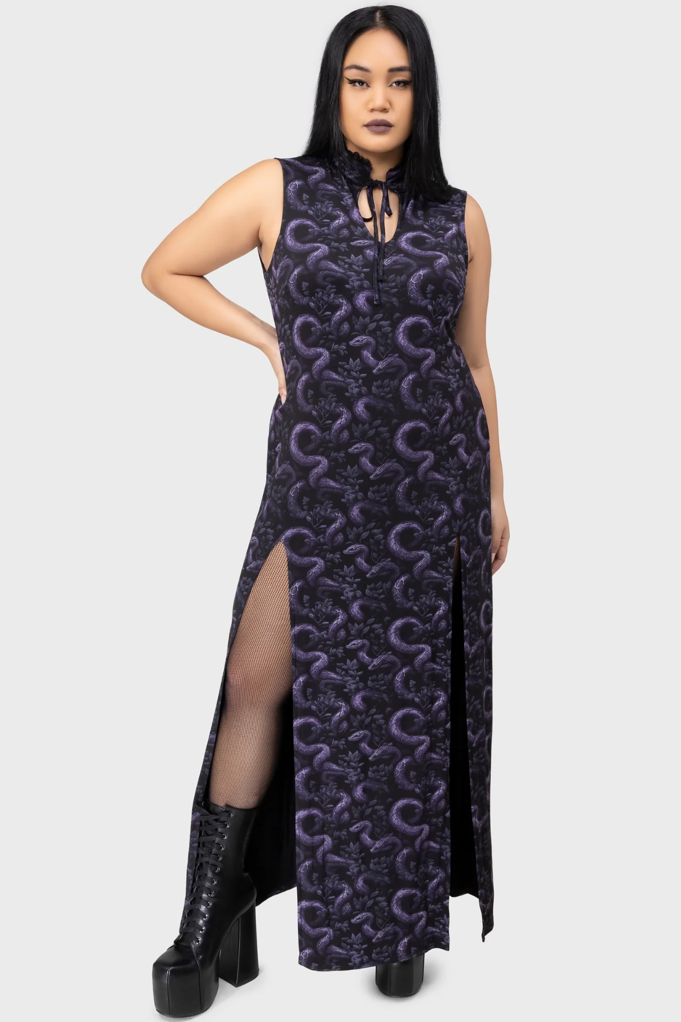 – Unique purple snake print.