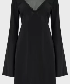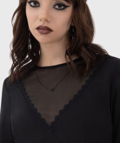 – Mesh panel with lace trim.