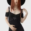 With KILLSTAR branding, Fabric 1 : 63% Viscose 32% Polyamide 5% Elastane Fabric 2 : 95% Polyester 5% Elastane.